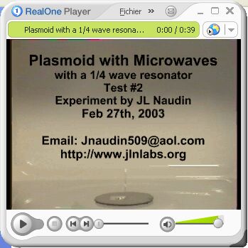 The purpose of this test is to build a plasmoid ( a ball lightning ) with a microwave resonator placed in a microwave oven. A microwave oven uses a magnetron as microwave source, its working frequency is 2.45 GHz. A magnetron is compact, has a light weight ( compared to a HV transformer with the same output power ) and it is a high power device. It is able to produce a great amount of power in a small volume most particularly in a plasmoid. A plasmoid is a great source of ions and can be very useful for EHD, MHD and Electrokinetic devices such as the Lifter....
