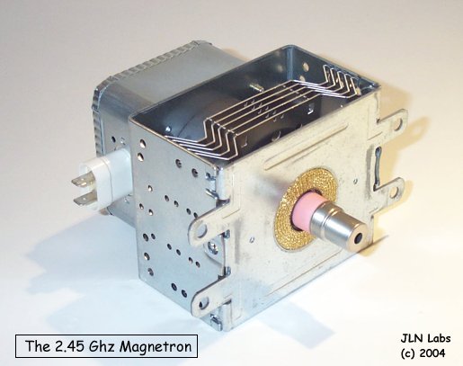 The GMR antenna must be tuned to the magnetron frequency, so its size ( 30 mm high and a 30 mm radius of the base ) must be finely adjusted.