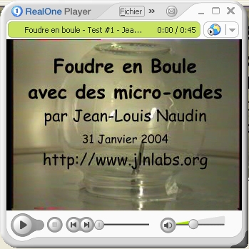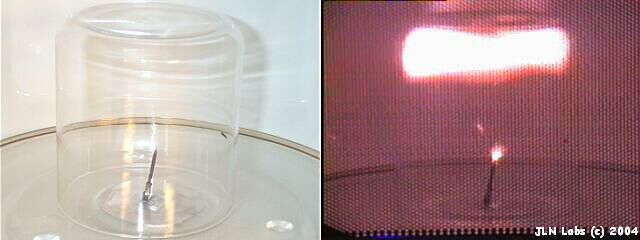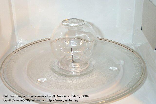 Comments about the experiment : This plasmoid ( ball lightning ) experiment is perfectly reproducible with a common microwaves oven but it is important to follow some important points :