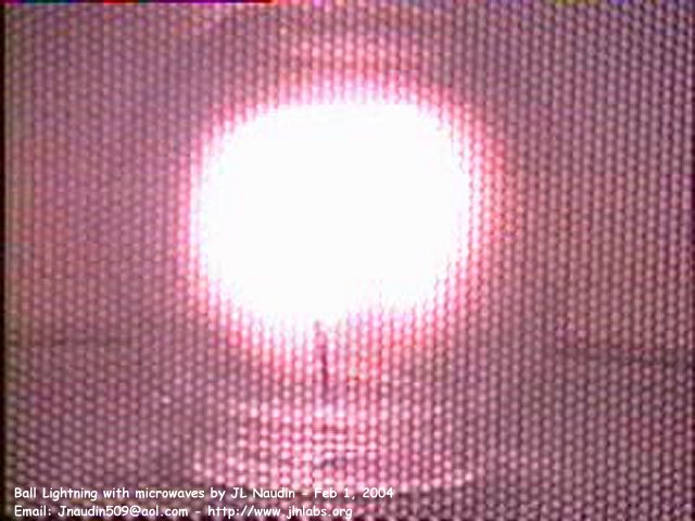 Pinch Effect' and completly autonomous. The experiment shown in my web site is the replication at a small scale of this natural phenomenon. The cloud of carbon particles is produced with a pencil graphite lead. The electromagnetic energy of the microwaves generated by a magnetron is absorbed by the cloud of carbon particles and a "plasmoid" is produced... Good experiments |