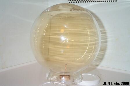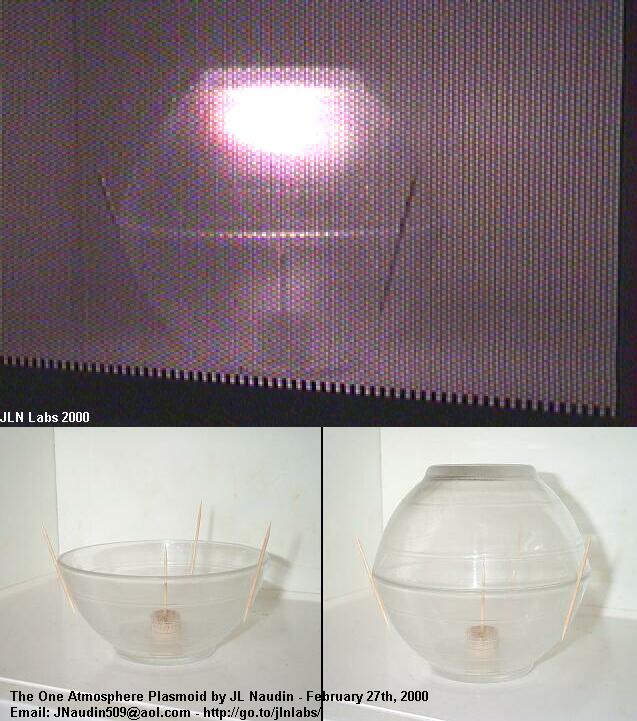 If you have some difficulties to find a spherical vessel, you may use two common Pyrex (tm) bowls, the plasmoid generated will be less stable ( a bit crratic ) than with a real sphere, but this will show you easily that the plasmoid experiment works. ( click here to see the plsamoid inside the two bowls )