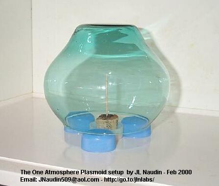 Some various shapes of glass vessels have been also tested, such as a cylindrical and an hemispherical shape. With these shapes, the plasmoid was erratic and unable to remain stable. The best shape is a kind of spherical vessel with the toothpick placed in its ( see the picture below ).