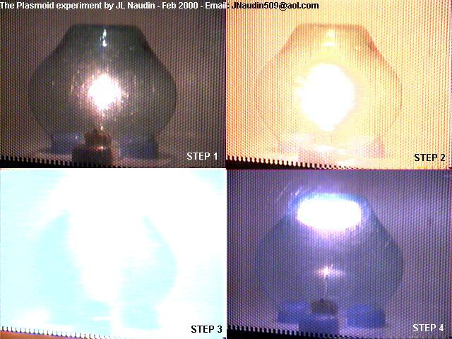 4) and then, a plasmoid coming from the burning charcoal climbs up to the top of the transparent vessel and remains stable ( STEP 4 ) with a loud humming...