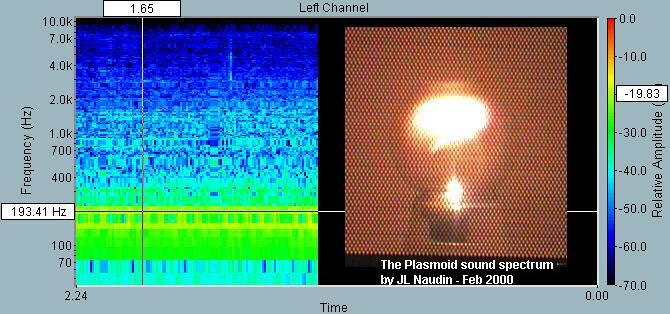 A sound analysis of the plasmoid "humming" noise has shown that its frequency is about 193 Hz.