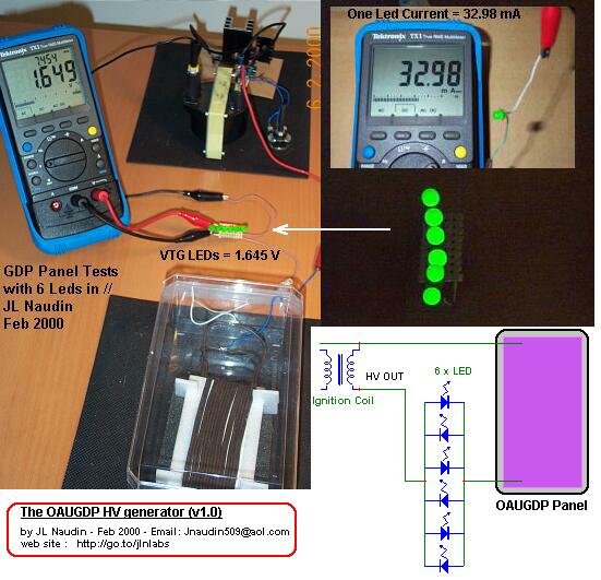 If 6 Leds ( sets in parallel ) are connected in series with the GDP Panels, their brightness is maximum, this proof that a real current flows ( 33mA is required for lighting one led ).